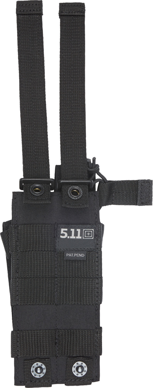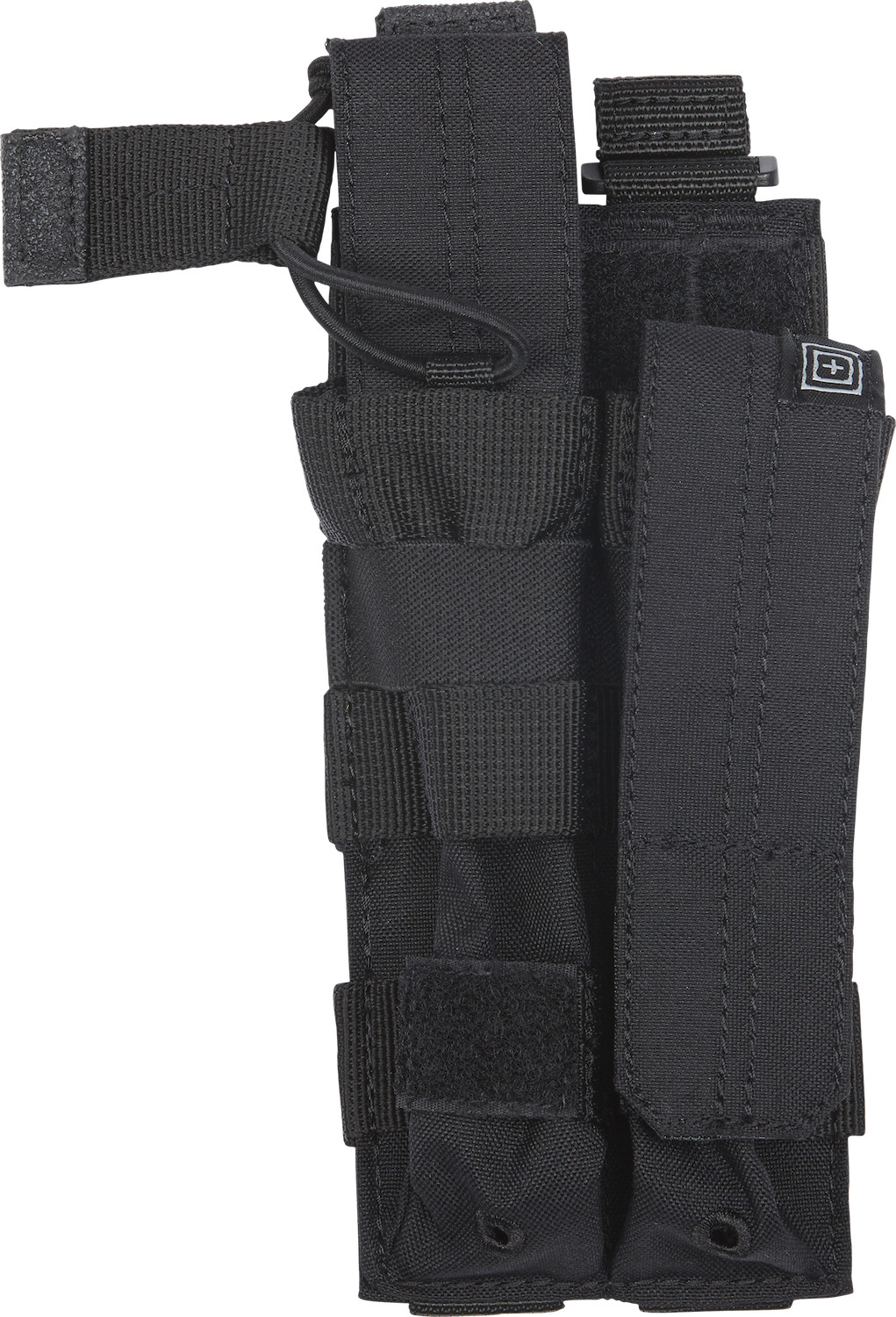 The 5.11 Double MP5 Magazine MOLLE Pouch with Cover is constructed from durable 500D nylon with a reinforced 1050D nylon base. Engineered for secure retention of 2x standard MP5 or similarly sized submachine gun magazines, it features a dual retention system with both bungee cords for rapid access and flap covers for added security. The pouch integrates with MOLLE compatible platforms for modular adaptability, whilst elastic compression ensures a snug fit with minimal movement. Additional features include reinforced stitching and a water resistant coating to deliver long term reliability in demanding, tactical environments.