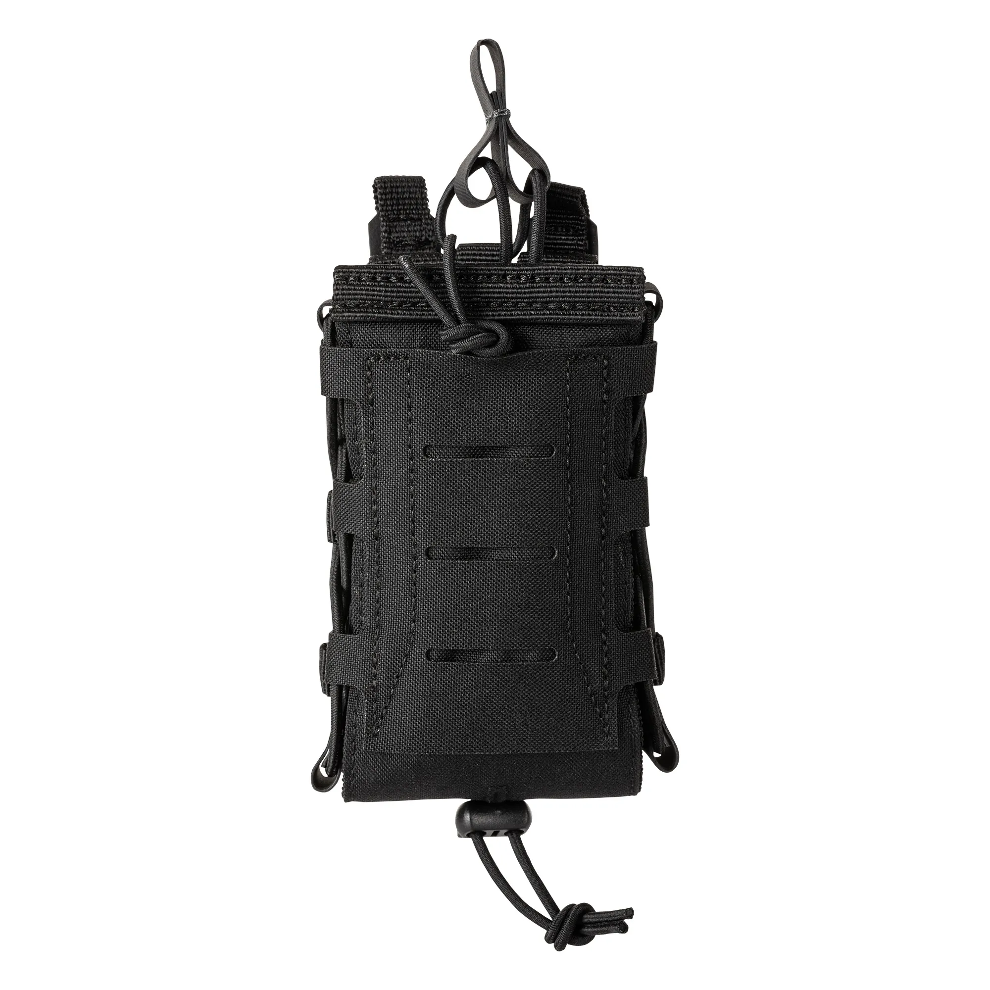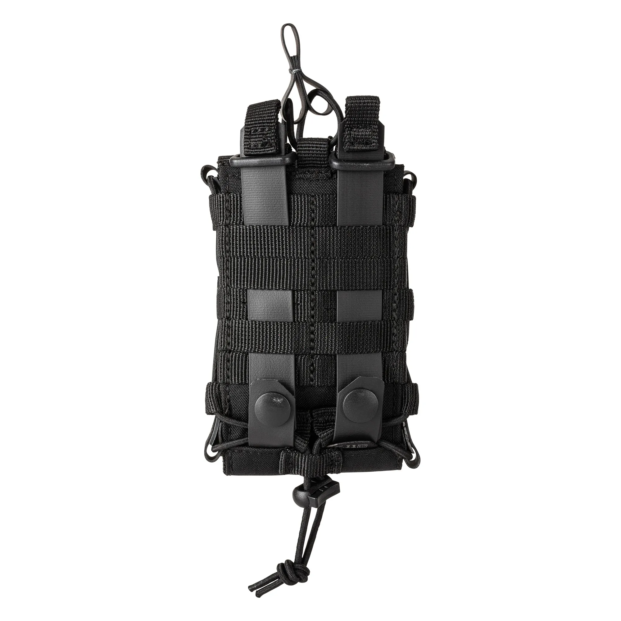 The 5.11 Flex Single Multi Calibre Magazine MOLLE Pouch is a premium, spare magazine storage solution engineered for tactical reliability and modular versatility. Constructed from durable 500D nylon material with a water resistant coating, this pouch is built to withstand the elements across a wide range of environments. Featuring MOLLE/Flex-HT™ system straps on the back that allow for seamless integration onto any MOLLE compatible platform, the pouch also benefits from a bungee retention system via the included cord. The front and bottom panels are double layered with 500D nylon for extra durability, whilst the rear MOLLE straps have been TPU coated for a more durable, waterproof finish. This pouch can hold a multitude of different magazine sizes and also features a front, laser-cut MOLLE panel.