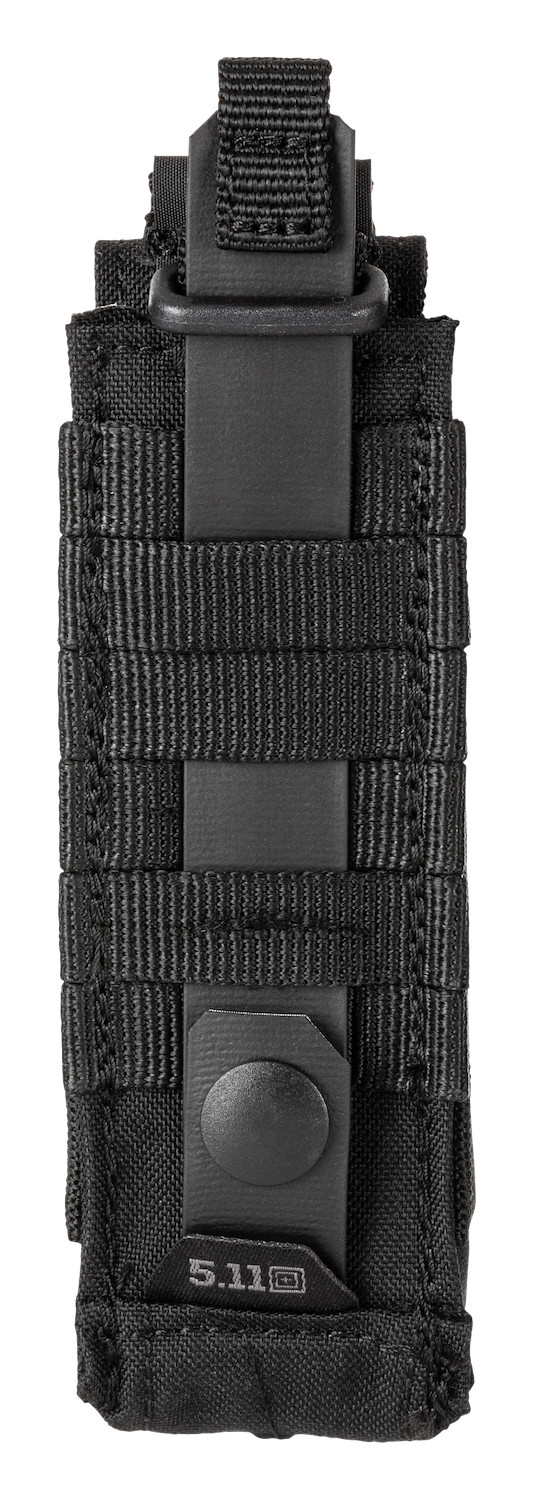The 5.11 Flex Single Pistol Magazine MOLLE Pouch with Cover is a premium, spare magazine storage solution engineered for tactical reliability and modular versatility. Constructed from durable 500D nylon material with a water resistant coating, this pouch is built to withstand the elements across a wide range of environments. Featuring MOLLE/Flex-HT™ system straps on the back that allow for seamless integration onto any MOLLE compatible platform, the pouch also includes an integrated dual function cover flap that can be secured for maximum retention or tucked away for faster access.