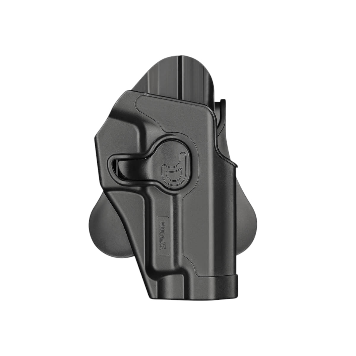 AMOMAX® holsters are constructed from precision moulded, durable polymer and are designed for tactical and law enforcement training use. Renowned for their active retention system, they feature a reliable trigger guard locking mechanism with a quick-release push button for both secure storage and rapid draw. This model is compatible with the all variants of the P226 Pistol available in our store.