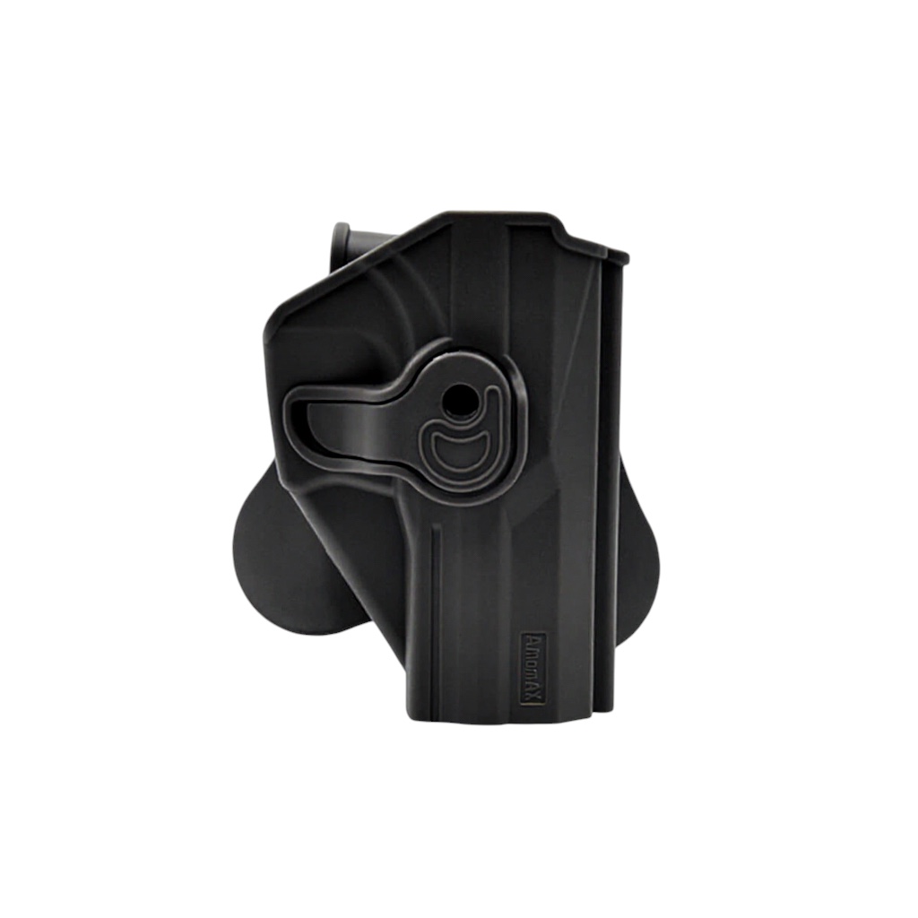 AMOMAX® holsters are constructed from precision moulded, durable polymer and are designed for tactical and law enforcement training use. Renowned for their active retention system, they feature a reliable trigger guard locking mechanism with a quick-release push button for both secure storage and rapid draw. This model is compatible with the all variants of the USP Pistol available in our store.