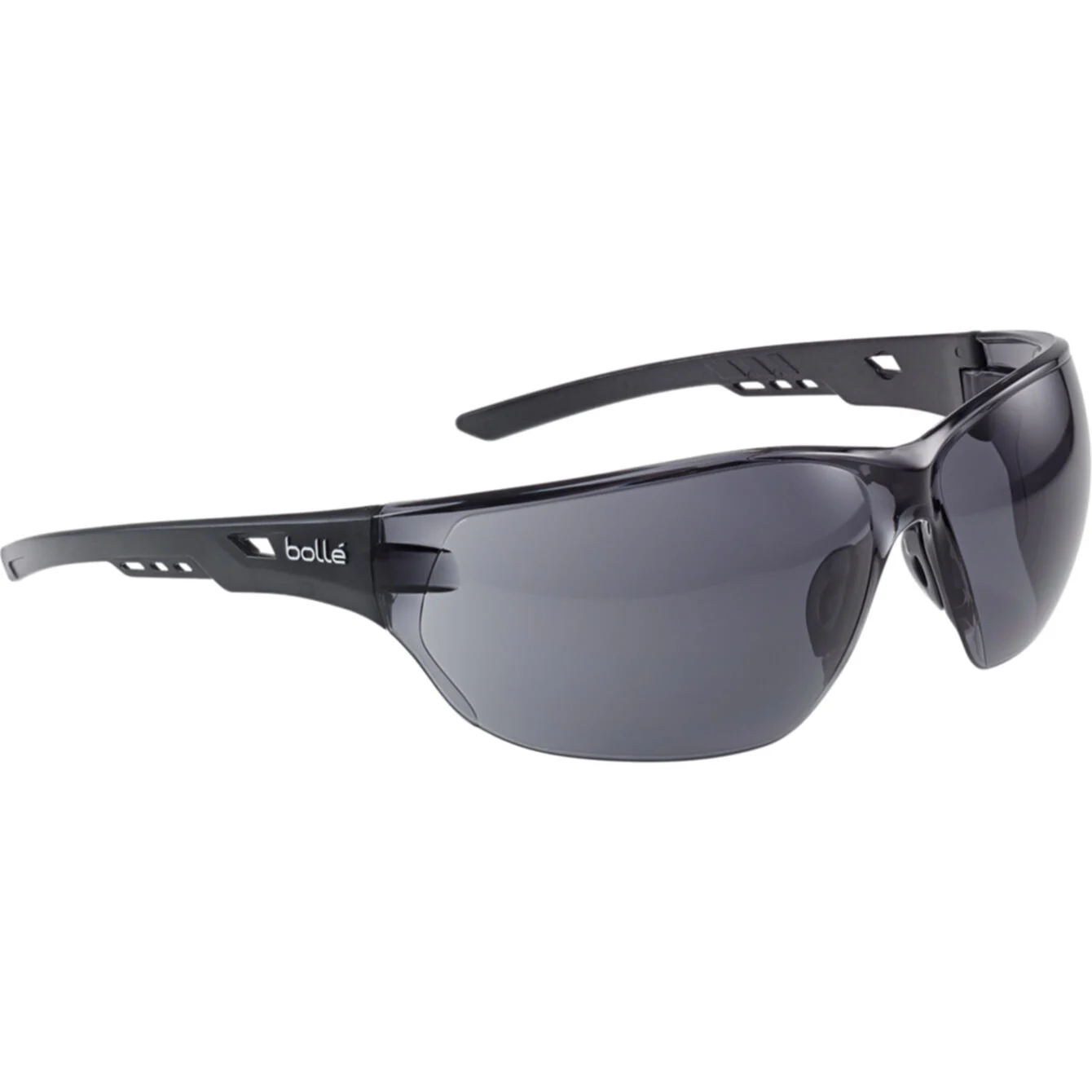 The Bollé NESS Safety Glasses offer excellent protection against sunlight at an affordable cost. Featuring a smoke tinted lens with 13% visible light transmission for effective glare reduction, these glasses filter 99.99% of UVA and UVB rays and are compatible with most anti-fog sprays. Designed with an ultra wrap-around frame to ensures optimal coverage and protection without compromising on comfort. Additional features include a non-slip bridge for a more secure fit than average and thin temples that seamlessly integrate with other personal protective equipment, such as hats or ear defenders.