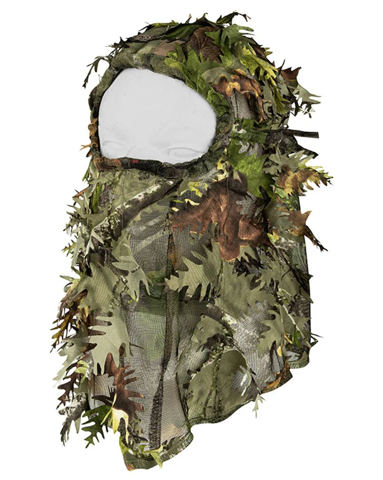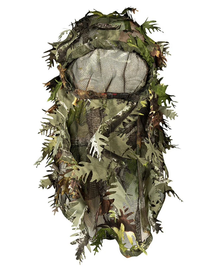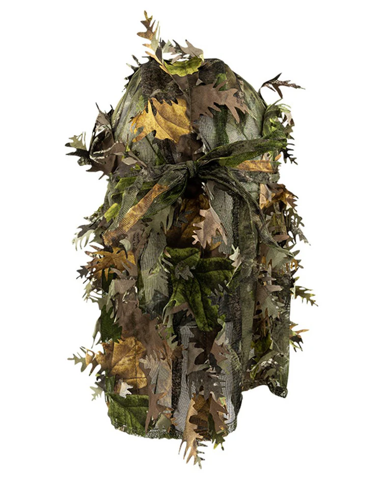 LLCS 3D camouflage system English oak woodland synthetic leaves Mesh veil over the eyes hole Size adjustment via side tiebacks Part of the Jack Pyke LLCS 3D range