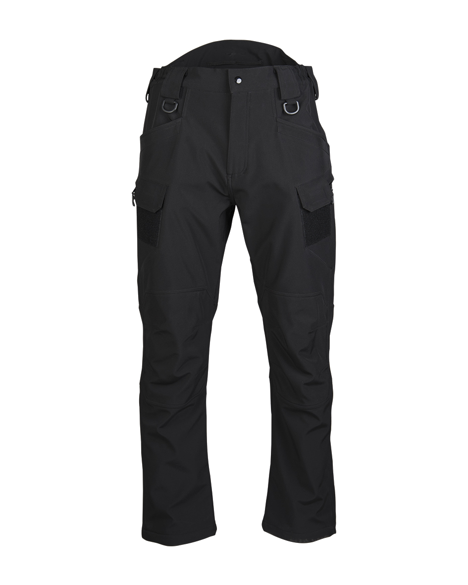 The Mil-Tec Assault Softshell Trousers are rugged, weather resistant tactical trousers designed for comfort, functionality and adaptability in demanding outdoor environments. Constructed from a durable, three layer softshell fabric that comprises of a polyester-elastane outer, breathable mid-layer membrane and a soft fleece inner lining. These pants offer a balanced combination of windproofing, water resistance (up to 5,000mm) and thermal comfort without compromising mobility. The ergonomic, modern tailored cut includes stretch panels and an elasticated waistband with a raised back section, ensuring a secure and comfortable fit during active movement or prolonged wear. Featuring 8x utility pockets, including zippered thigh compartments, velcro secured rear and cargo pockets plus and MOLLE compatible areas, these trousers provide ample storage and attachment capability.