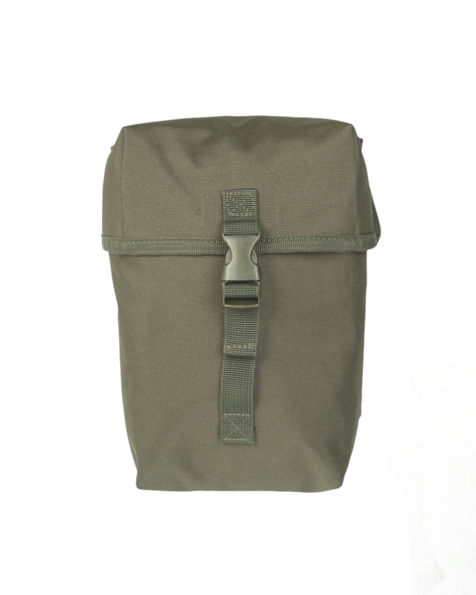 A durable and versatile storage pouch designed for tactical and general outdoor use, made from 100% durable polyester with a resistant PVC coating. It features MOLLE compatible straps on the back for secure attachment and a spacious interior compartment with internal drawcord closure. Ideal for empty magazines, tools, first-aid kits or personal gear.