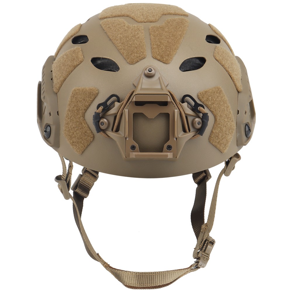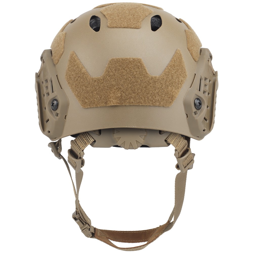 The Nuprol Fast Railed SF Air Helmet is manufactured from durable, hardened Polypropylene and is internally padded with thick sponge cushions for enhanced comfort. Its matte surface provides low reflectivity and is more forgiving to abrasion than traditional most tactical helmets. A forward mount port for cameras/NVGs, as well as side rails for further accessories ensures this helmet is customisable but remains lightweight. The side rails also feature buckle holes that can be used with compatible face protection masks. Internally, a deep-cut band has been provided in the top to allow the helmet to be used with a variety of communication headsets. The top of the helmet features angled ventilation holes and plenty of velcro strips are mounted to the outside for further customisation using helmet covers or pouches. One size fits all, with a maximum head circumference of 61cm.