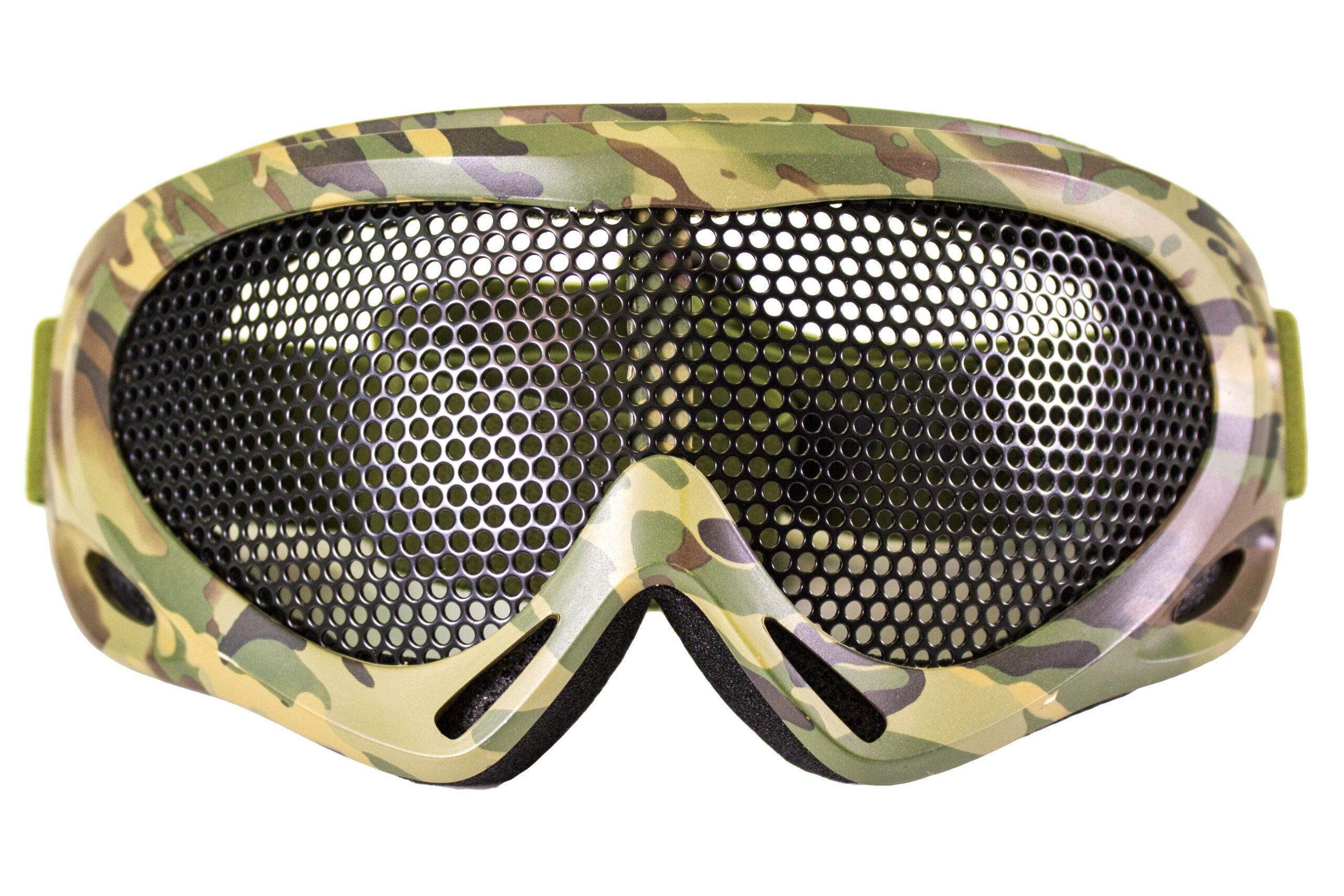 The Nuprol Mesh Eye Pro goggles are constructed with a strong, high density polymer frame that houses a customised steel mesh, that is built two times thicker than the industry standard for mesh googles. The air ventilation wholes are just enough to allow complete air flow for ventilation, but small enough to not compromise eye safety with Airsoft BBs. These goggles come with a fitted, adjustable strap that wraps around most head sizes comfortably. Tested up to CE safety standards and available in 4 different colours.