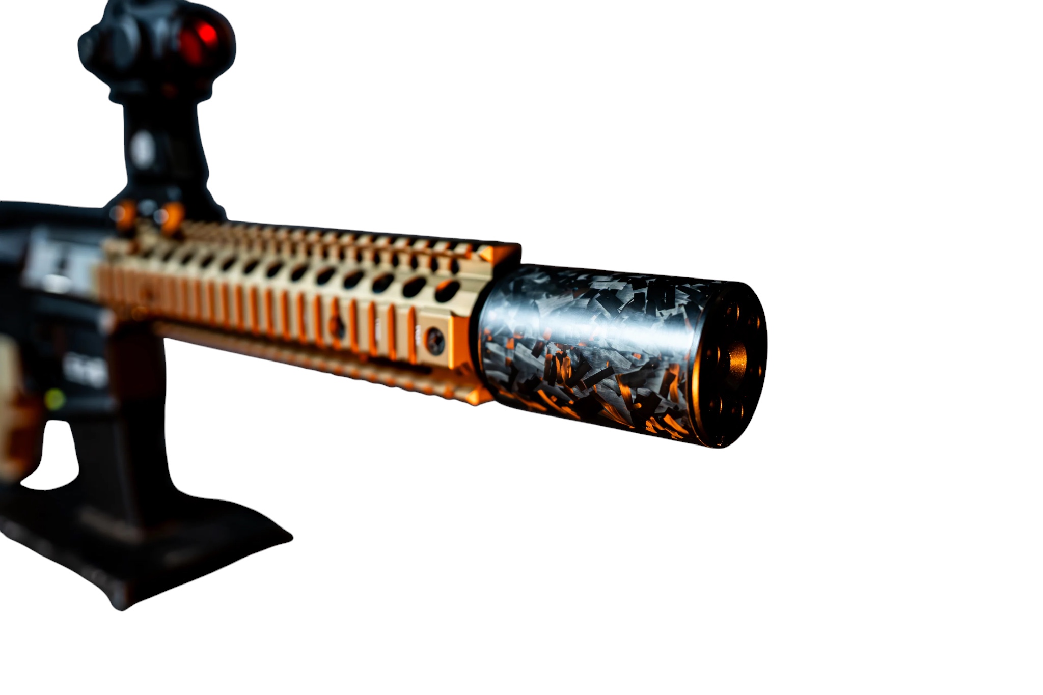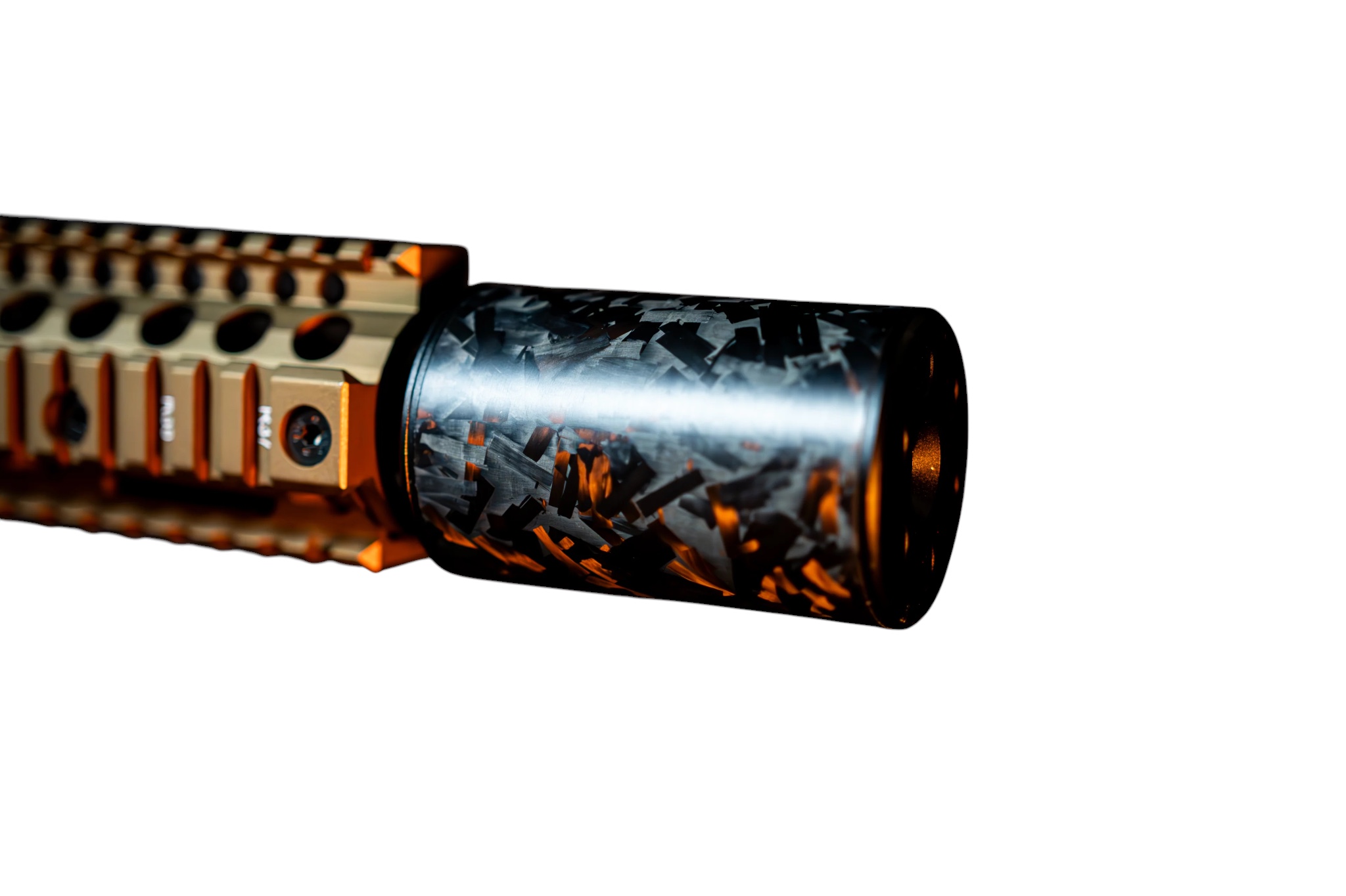 Introducing the FATBOY Stubby Also known internally as the “CHODE”, Dimensions: 85 mm length × 50 mm diameter. Experience elite performance and precision engineering with OG Carbon’s Forged Carbon Suppressors. Constructed from roll-wrapped forged carbon fiber and finished with 7075 aerospace-grade aluminum endcaps, each unit delivers exceptional strength, reduced weight, and a refined, modern aesthetic. Precision-cut foam baffles provide effective sound attenuation, while the fully serviceable design allows for easy maintenance and customisation. Each suppressor is engineered with tracer compatibility in mind. The rear end-cap features an internal 14×1 LH thread, allowing direct mounting of a tracer unit inside the suppressor. Due to the compact length of the FATBOY Stubby, only short, low-profile tracer units are compatible. This internal mounting system eliminates wobble, prevents rattle, and removes the risk of BB strikes—ensuring reliable alignment and tracer protection.