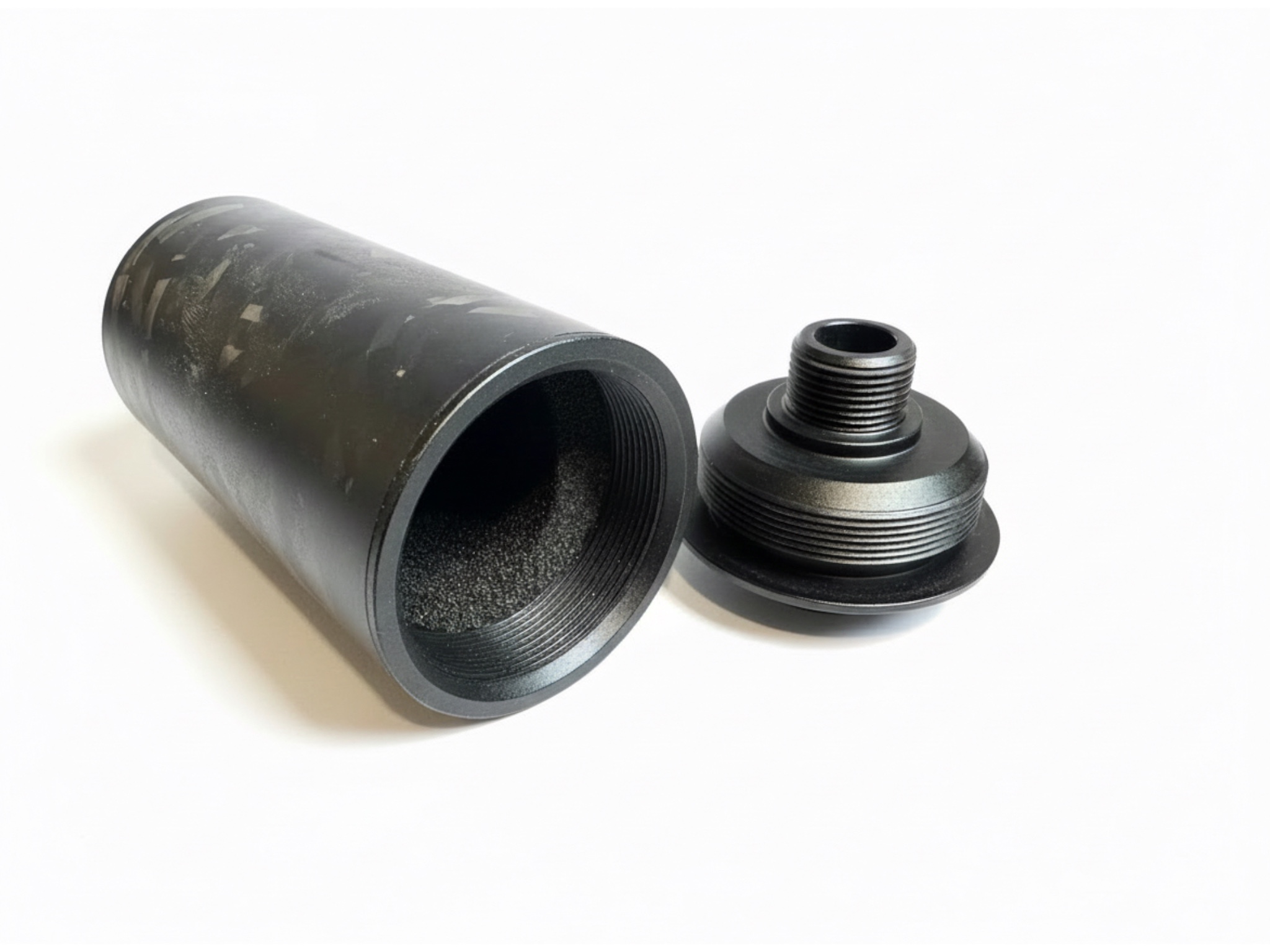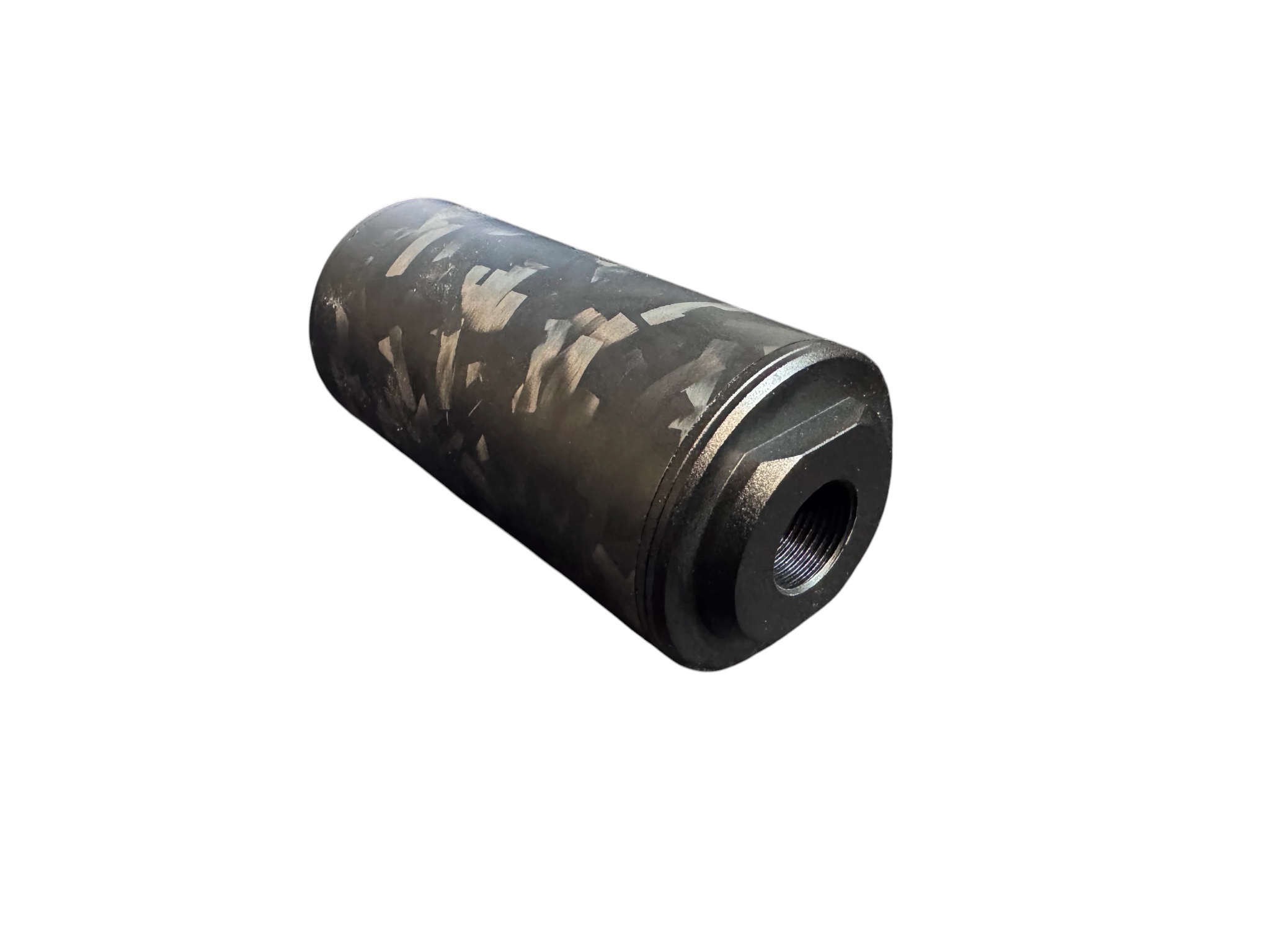 Meet the MINI CHODE. Designed for medium-sized tracer units, the MINI CHODE delivers compact performance with enhanced internal volume, perfect for setups that demand reliable tracer integration and effective sound reduction. Compatible with: Acetech Brighter C, T238 nano (Max tracer diameter: 33 mm | Max tracer length: 60 mm) Dimensions: 85 mm length × 40 mm diameter. Precision Engineering. Premium Materials. OG Carbon’s Forged Carbon Suppressors are constructed from roll-wrapped forged carbon fiber and finished with 7075 aerospace-grade aluminium end-caps, offering exceptional strength, minimal weight, and a refined, modern aesthetic. Precision-cut foam baffles deliver excellent sound reduction, while the fully serviceable design allows for straightforward maintenance, tuning, and customisation. Every suppressor is engineered with tracer compatibility at its core. The internal 14×1 LH threaded rear endcap allows tracer units to mount directly inside the suppressor, ensuring perfect alignment. This design eliminates wobble, prevents rattle, and removes the risk of BB strikes—keeping your tracer protected and precisely aligned.