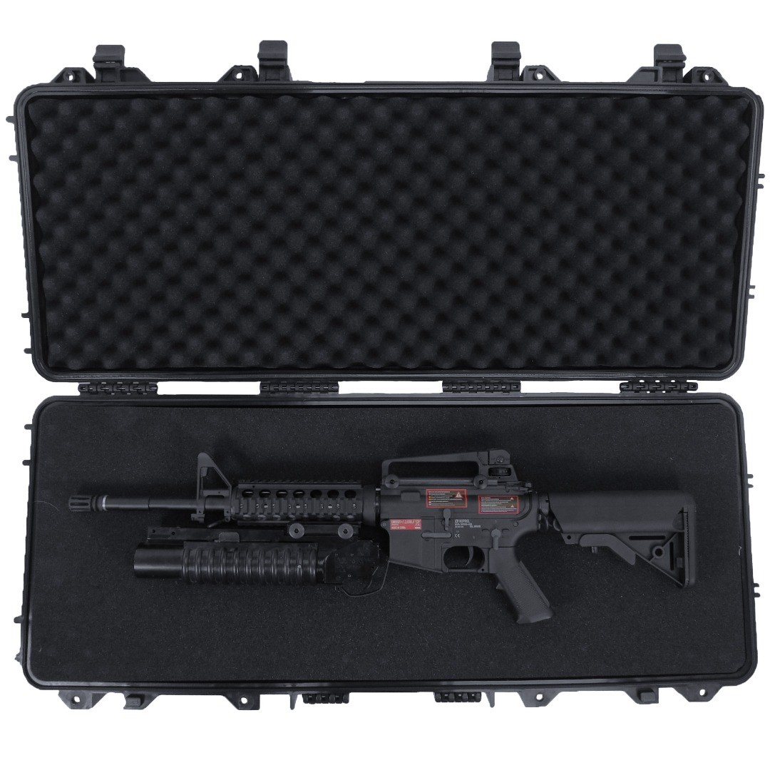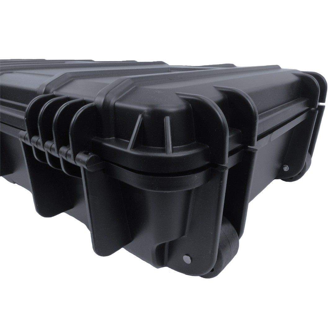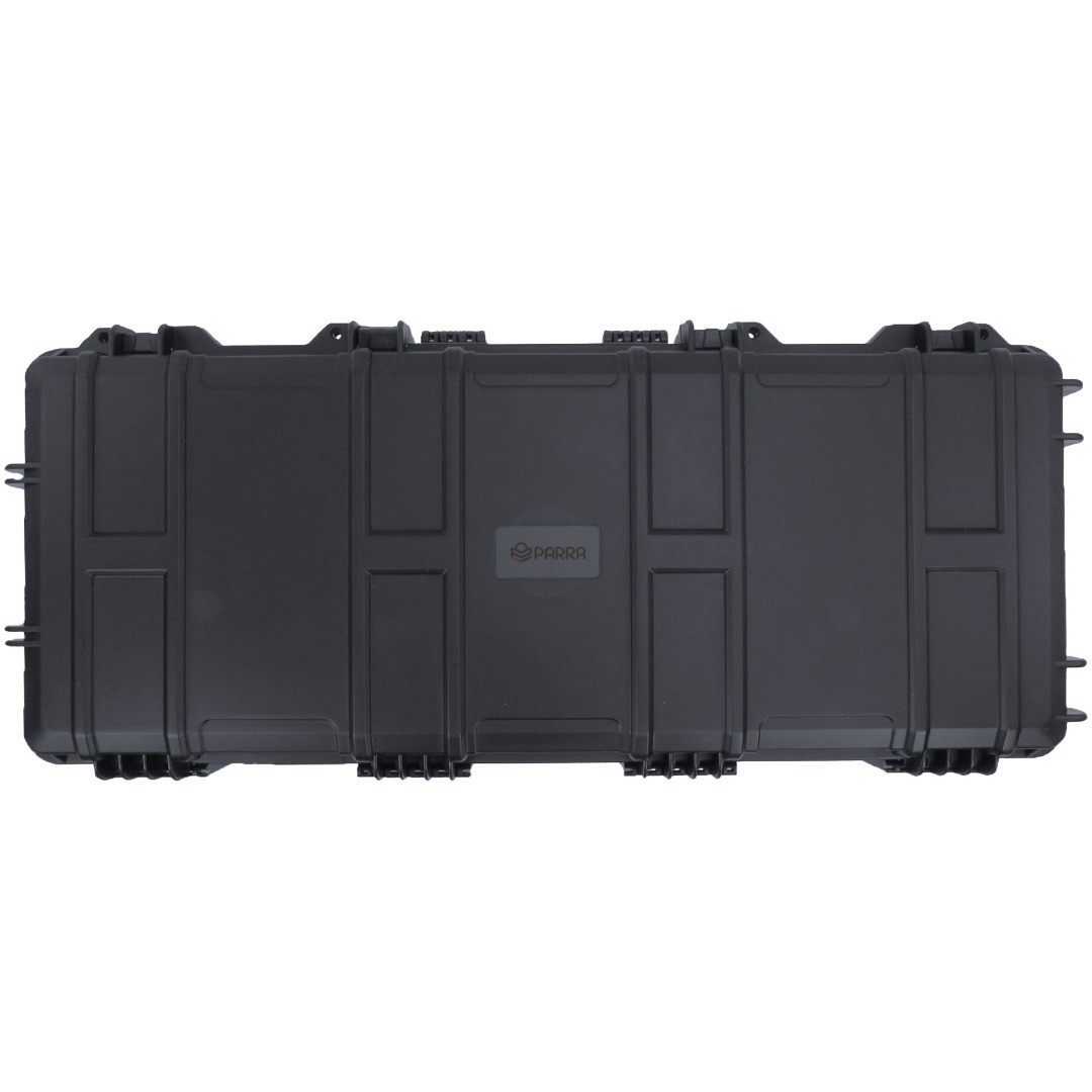 PARRA Gun Cases are a premium, rugged storage solution engineered for both maximum durability and reliability in demanding environments. Constructed from a hybrid blend of polypropylene and glass fibre material, this case provides IP67 certified water protection at 1m deep for up to 30 minutes. Engineered to shield sensitive equipment from shock, moisture and extreme temperatures (-40°C to +90°C) all cases in the PARRA range have been manufactured to the highest standards. This case features Pick and Pluck (P&P) foam, rather than industry standard wave foam, that offers enhanced customisation to suit all operational requirements. Suitable for tactical accessories, electronics and size compatible firearms. External measurements 97.8cm (L) × 42cm (H) approx. Internal measurements 93cm (L) × 35.6cm (H) approx. Firearm in images not included.