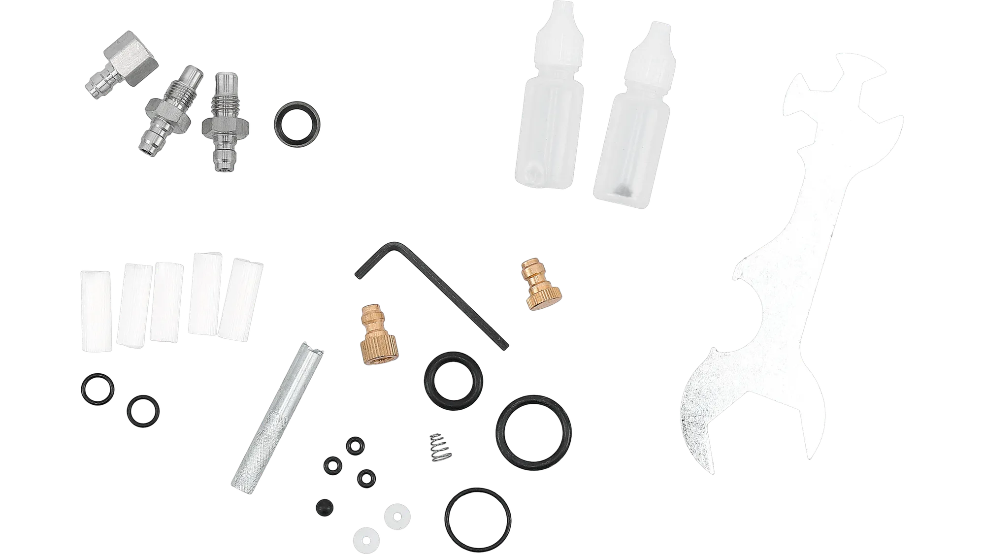 Includes multiple adapter fittings (M10, M10x1, 1/8″ Quickfill, Foster)