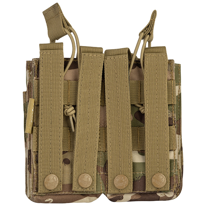 The Viper Duo MOLLE Magazine Pouch is a robust, MOLLE compatible magazine pouch designed to carry up to 4 magazines. Constructed from durable 600D Cordura, it features quick-release bungee retention for fast access and secure storage. The pouch integrates seamlessly with any MOLLE compatible platform and also includes front MOLLE webbing for additional attachments.