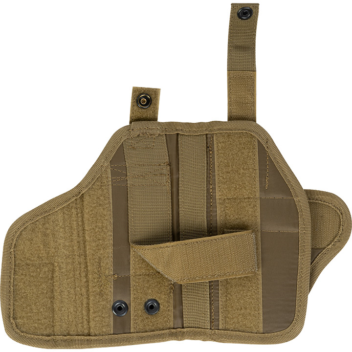 The Viper MOLLE Universal Holster is an ultra-durable and practical holster designed for sidearms of most common sizes. The Hook & Loop adjustable straps on the top and sides allow the operator to adjust the size according to their specific requirements. The holster also features 2x MOLLE straps on the back for secure attachment to any MOLLE compatible platform, including chest plate carriers and leg holster panels.