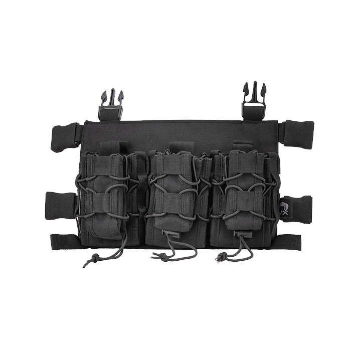 The Viper VX Buckle Up Magazine Rig is a modular front panel designed to carry at least 3 rifle magazines and 3 pistol magazines. Made for fast-paced operations, this rig is compatible with and integrates seamlessly with the Viper VX Buckle Up Carrier Gen2, but may also be attached to Hook & Loop panels on other platforms, such as plate carriers or rucksacks, via the rear velcro panel. Crafted from TP700; a tough, abrasion resistant tactical fabric, this rig is rugged enough for operational use yet lightweight and flexible enough for movement intensive scenarios. To keep the magazines in place there are quick-release bungee retainers on each pouch.