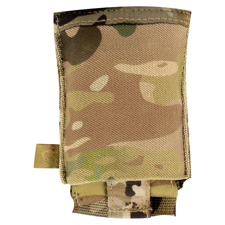 The Viper VX Stuffa MOLLE Dump Bag is a compact storage pouch engineered for rapid deployment and efficiency, providing an on-demand alternative to the traditional dump bag. It can be used to quickly store empty magazines during reloading. When not in use, the bag can be folded back into its compact, stylish MOLLE pouch. A quick-pull tab instantly unfurls it whenever it is needed, transforming it into a practical dump bag. Constructed with heavy-duty TP700 fabric, elastic elements and nylon ripstop it maintains durability and functionality in demanding conditions. MOLLE system straps come fixed to the back for secure attachment onto any compatible platform. When folded up, the measurements are 8x12x4cm and when fully deployed 38x22x4cm, spacious enough to hold several rifle magazines.