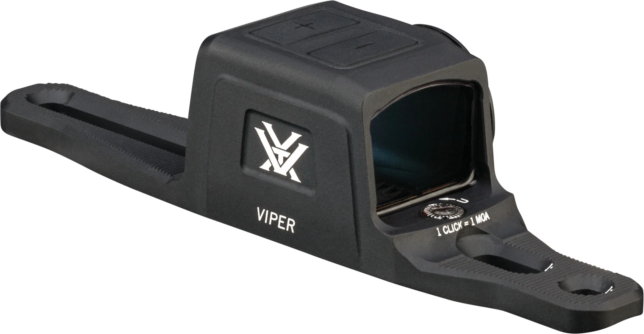The Vortex Viper® Shotgun Enclosed Dot Sight is a premium optic designed for professional, tactical operators. Designed for shotguns with drilled and tapped receivers, this sight features an integrated universal mounting system and a rugged enclosed 6061 aluminium housing that shields internal components from debris and moisture. A large viewing window and aspherical lens provide a distortion-free sight picture and true colour rendition for fast target acquisition, while motion activated operation with a 10 minute auto-shutoff conserves the battery life. User-friendly top controls and a side-load battery compartment allow quick adjustments and battery changes without re-zeroing. The sight offers parallax-free performance plus unlimited eye relief and is waterproof, anti-fog and shockproof to withstand both strong recoil and demanding environments. Also included in the box is a rubber cover, custom tool, CR2032 battery, lens cloth and a set of common mounting screws.