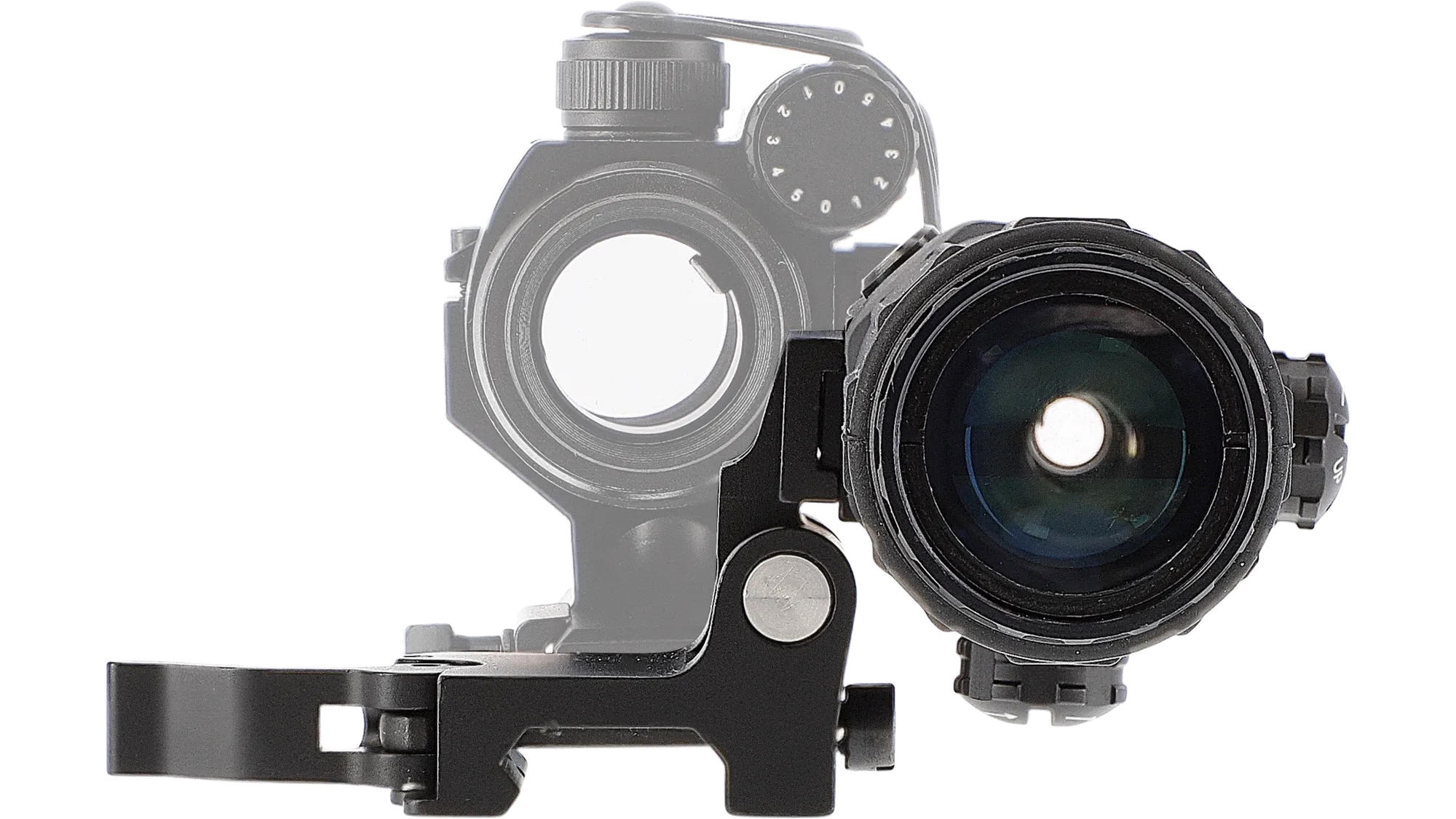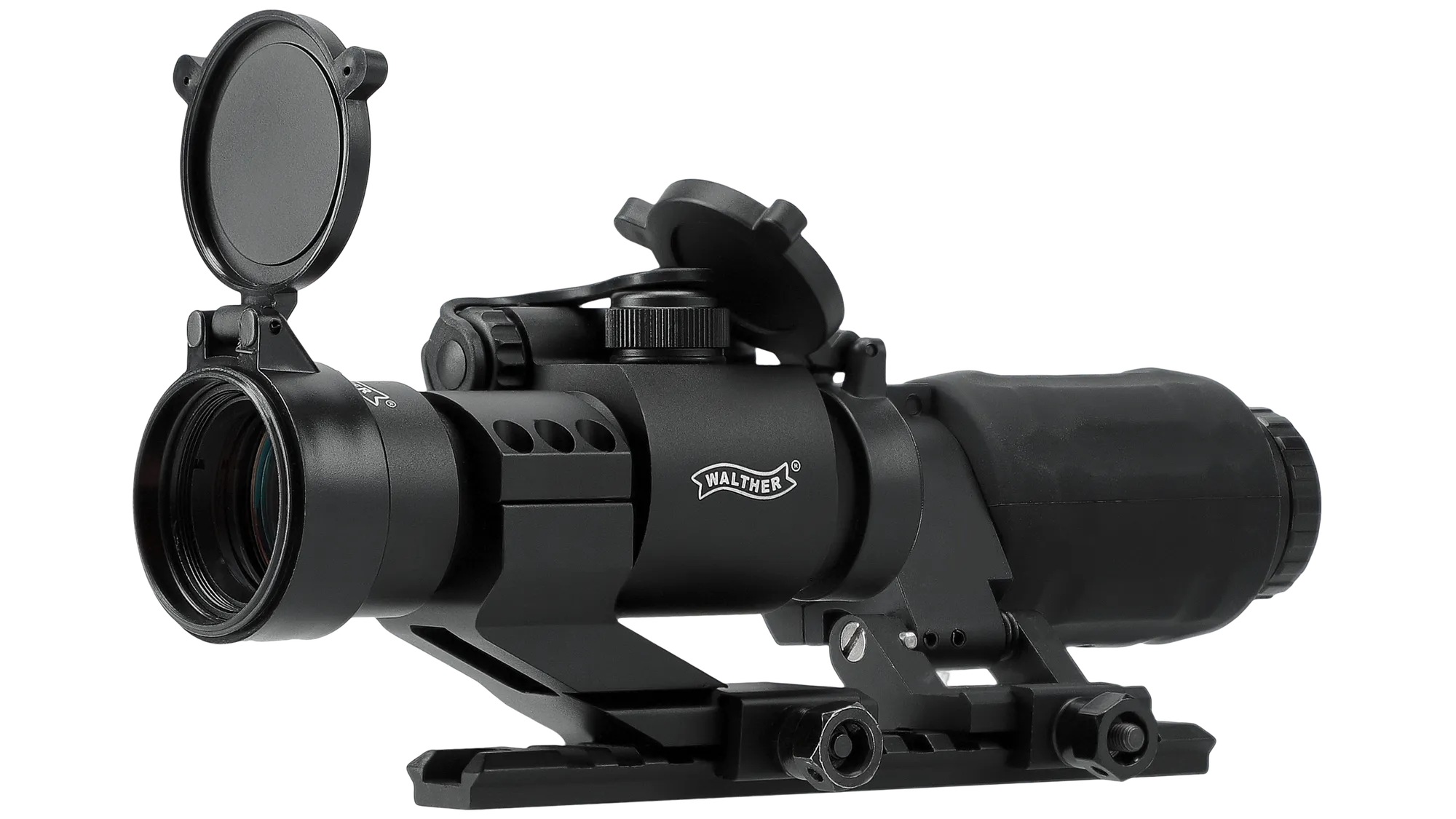 The Umarex MPS3 Dot Sight Magnifier with Flip Mount is a tactical, compact and fully integrated optical system combining a robust 4 MOA dot sight (red colour) with a swivel-to-side 3× magnifier that has been designed to deliver precise target acquisition at close range and rapid zoom deployment with enhanced clarity for mid-distance engagements. Built on a durable RIS mounting platform, this system features a multi-brightness illuminated reticle with multiple intensity settings optimised for varying light conditions. The magnifier itself incorporates a diopter adjustment ring to fine-tune focus to the operators eye, offering a clear field of view and smooth transition between magnified and unmagnified modes without the need for re-zeroing. Constructed with rugged metal and polymer components, the MPS3 provides a stable, reliable optical solution suited for modern rifles and tactical platforms, delivering a balance of versatility, durability and performance in a single, streamlined package.