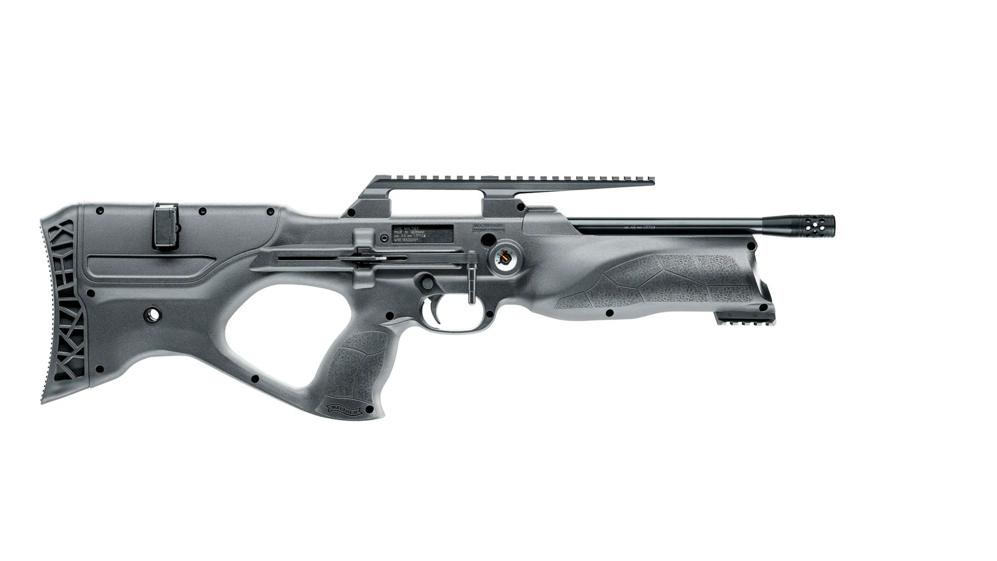 The Walther Reign M2 Bullpup is a modern, regulated pre‑charged pneumatic (PCP) air rifle that has been engineered for sleek ergonomics and ultra-compact storage. Constructed from premium, high strength polymer this rifle has an adjustable one/two stage trigger, a precision manufactured Lothar Walther rifled barrel, pressure gauge and filling port for fast top‑ups. Additional features include an adjustable cheekpiece, ambidextrous controls and a RIS rail for attachments.